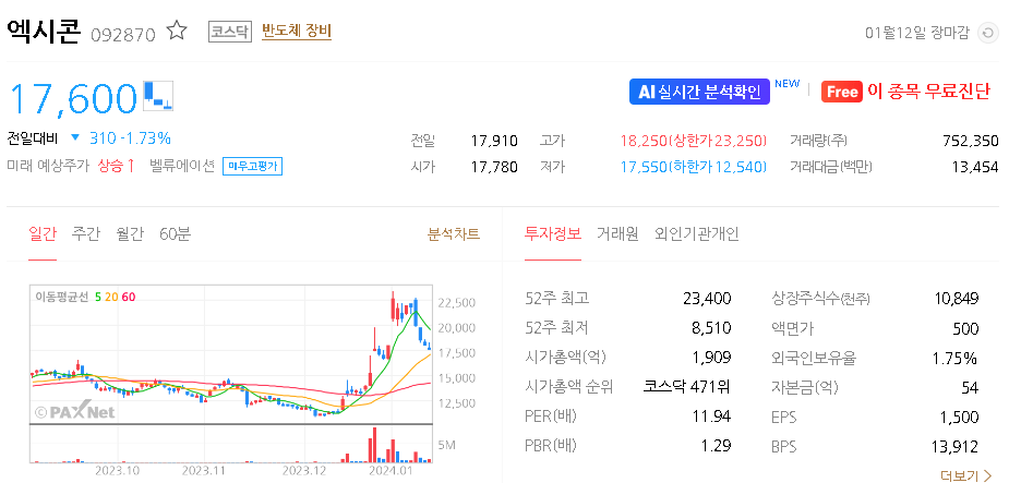 이 글에서는 엑시콘 주가 전망과 목표 주가, 기업 정보에 대해서 설명합니다. 주식 시장에서 중요한 것은 미래의 기업 가치를 예측하고 선제적으로 움직이는 것입니다. 투자 대상을 선택하기 전에 현재 기업의 현황과 데이터를 확인하는 것이 필요합니다. 엑시콘 주식의 주요 현황과 투자 정보를 확인하시고 주식 투자에 도움이 되는 정보들을 모아 제공하니 투자에 도움을 받으실 수 있을 것입니다.