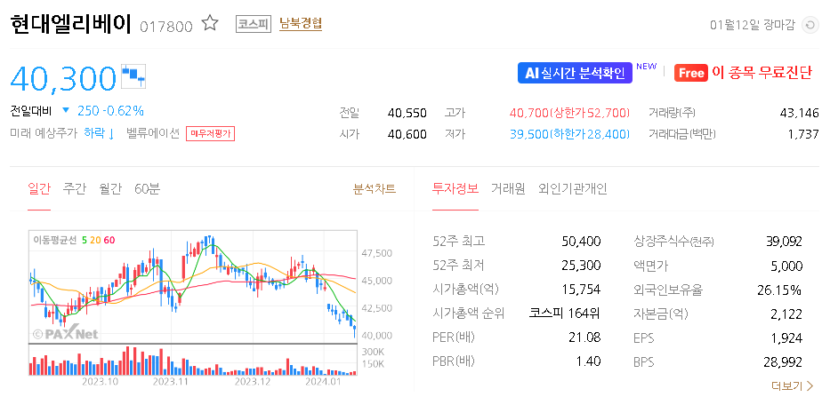 이 글에서는 현대엘리베이 주가 전망과 목표 주가, 기업 정보에 대해서 설명합니다. 주식 시장에서 중요한 것은 미래의 기업 가치를 예측하고 선제적으로 움직이는 것입니다. 투자할 종목을 고르기 전에 현재 기업의 현황과 데이터를 확인하는 것이 필요합니다. 현대엘리베이 주식의 주요 현황과 투자 정보를 확인하시고 주식 투자에 도움이 될 만한 정보들을 모아 놓았으니 투자를 고려하실 때 참고하세요.