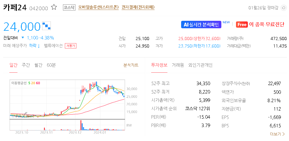이 글에서는 카페24 주가 전망과 목표 주가, 기업 정보에 대해서 설명합니다. 주식 시장에서 중요한 것은 미래의 기업 가치를 예측하고 선제적으로 움직이는 것입니다. 투자 대상을 선택하기 전에 현재 기업의 현황과 데이터를 확인하는 것이 필요합니다. 카페24 주식의 주요 현황과 투자 정보를 확인하시고 주식 투자에 도움을 줄 자료들을 모아 두었으니 투자에 도움을 받으시길 바랍니다.
